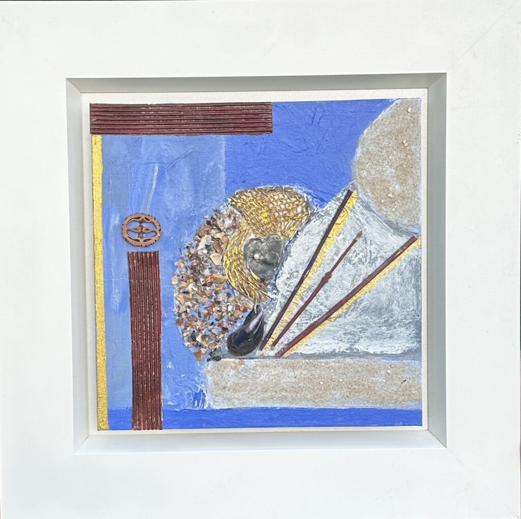 Collage (Algen, Muscheln u. a. 0,30 x 0,30) und Collage 0,40 x 0,50